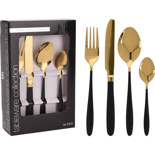 Μαχαιροπήρουνα Ανοξείδωτα Μαύρο-Χρυσό S/16