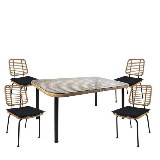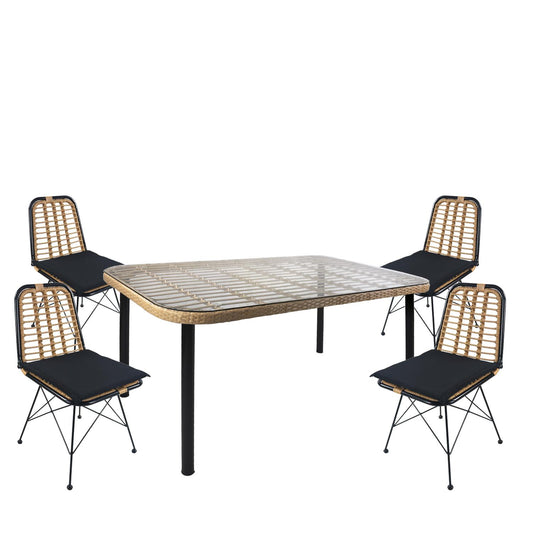 Σετ Τραπεζαρία Κήπου Callan 5 Τμχ Πολυπροπυλενίου Τραπέζι 140x70 - Πολυθρόνα Χρώμα Καφέ