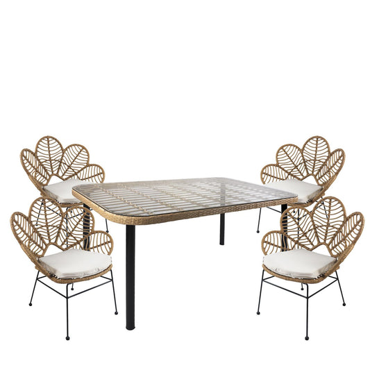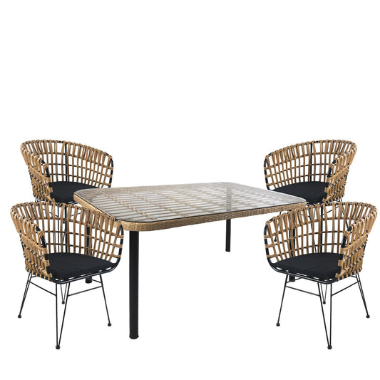 Σετ Τραπεζαρία Κήπου Callan 5 Τμχ Πολυπροπυλενίου Τραπέζι 120x70 - Πολυθρόνα Χρώμα Cappuccino