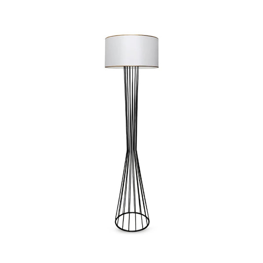 FLY 204-0127 Μοντέρνο Eπιδαπέδιο Φωτιστικό Μονόφωτο 1 x E27 IP20 Μαύρο & Χρυσό Μέταλλο με Μπεζ Ύφασμα - Μ38 x Π38 x Υ155
