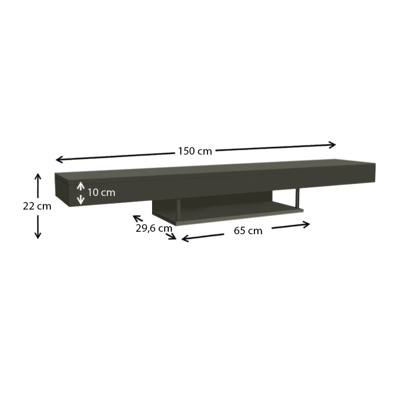 Έπιπλο Τηλεόρασης Επιτοίχιο Albares από Μελαμίνη με LED Χρώμα Ανθρακί 150x29,6x22