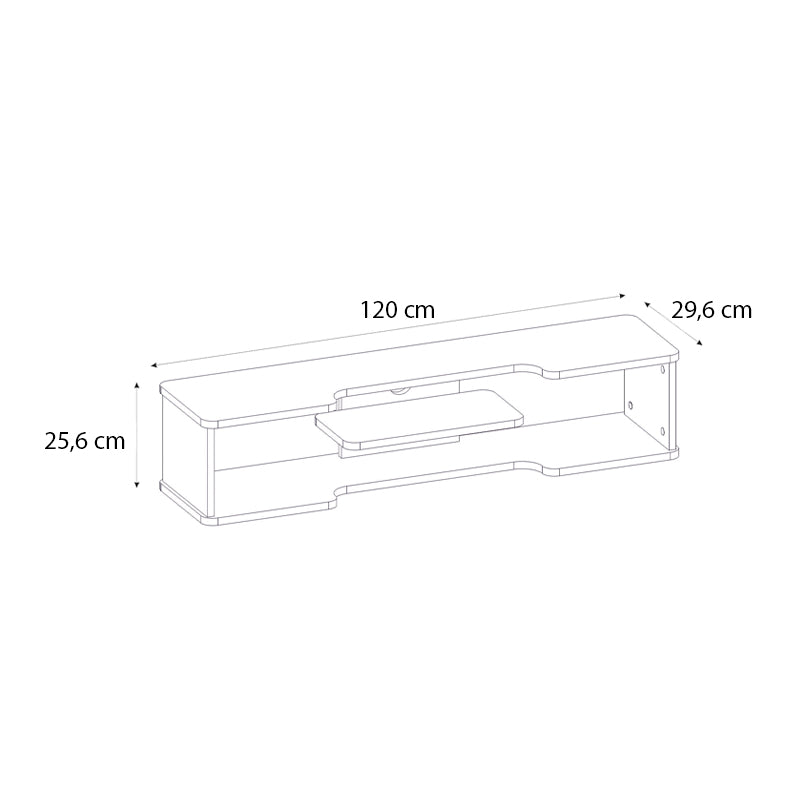 • Διαστάσεις: Μήκος 120 x Βάθος 29,6 x Ύψος 25,6 εκ.