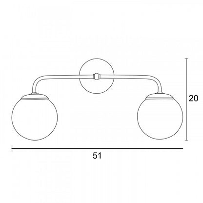 Φωτιστικό απλίκα δίφωτη G9 σε μοντέρνα γραμμή από μέταλλο σε χρώμα χρυσό ματ και γυαλί οπάλ Φ10