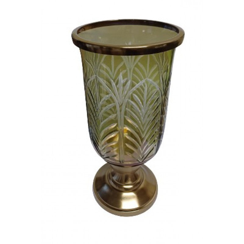 Βάζο Γυάλινο/Μεταλλικό Μελί/Χρυσό 16x16x32