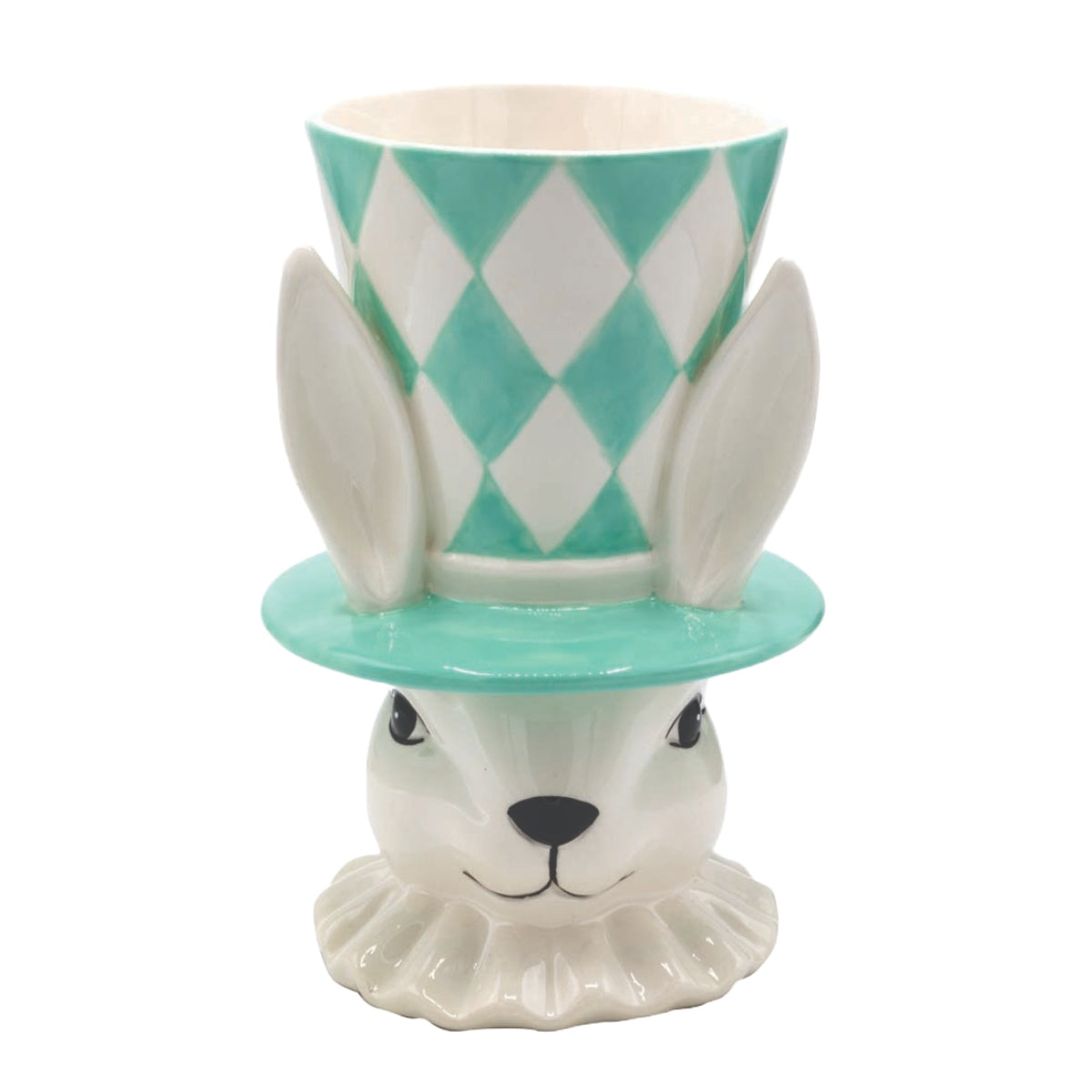 Βάζο 'Λαγός' Κεραμικό Λευκό/Σιέλ 13x13x20