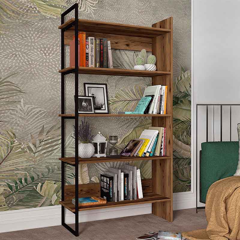 Βιβλιοθήκη Μελαμίνης Cecilia Χρώμα Καπνιστή Καρυδιά 91,8x34,8x180