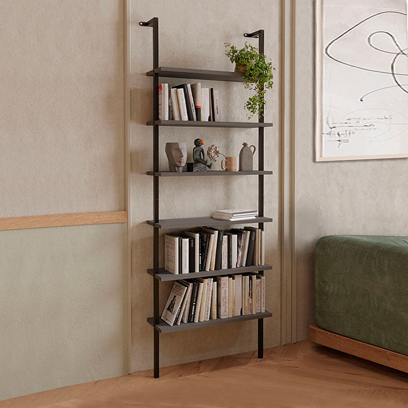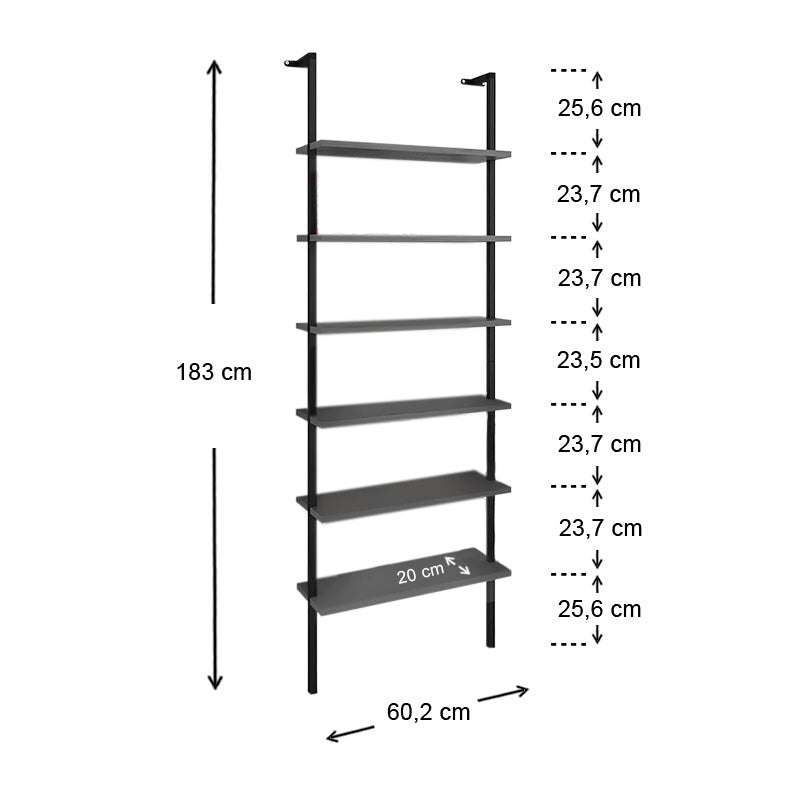 Βιβλιοθήκη Τοίχου Madison Μεταλλική - Μελαμίνης Χρώμα Μαύρο - Ανθρακί 60x20x183