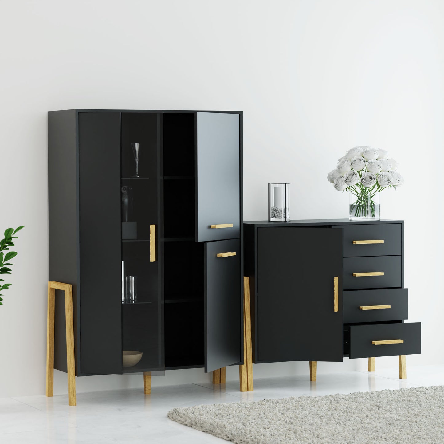 • Τρεις ανοιγόμενες πόρτες, η μία με τζάμι, οι οποίες κοσμούνται από τρία ξύλινα πόμολα