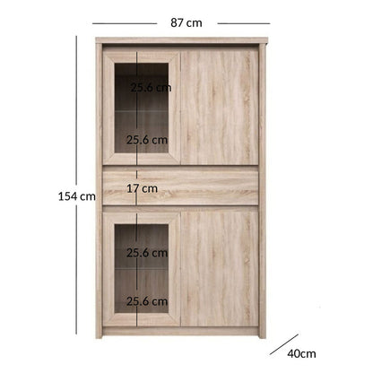 Βιτρίνα Norton Τετράφυλλη 87x40x153.5 με Συρτάρι Σονόμα Φυσικό