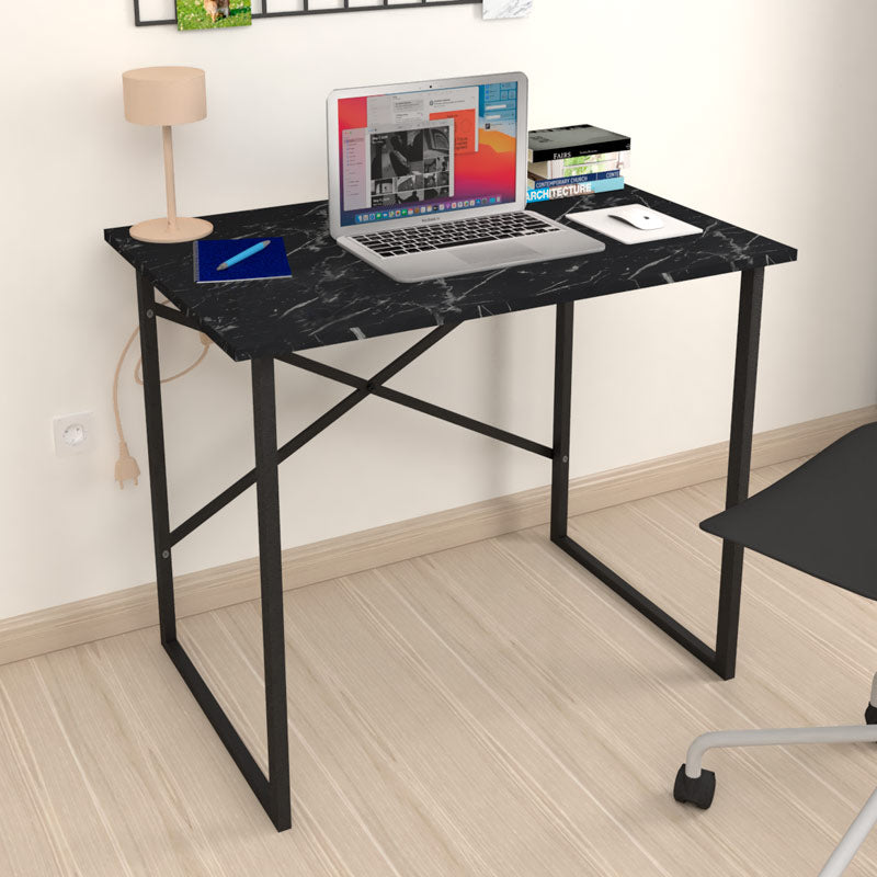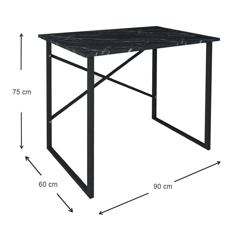 Γραφείο Εργασίας Rilke Μεταλλικό - Μελαμίνης Χρώμα Μαύρο Εφέ Μαρμάρου 90x60x75