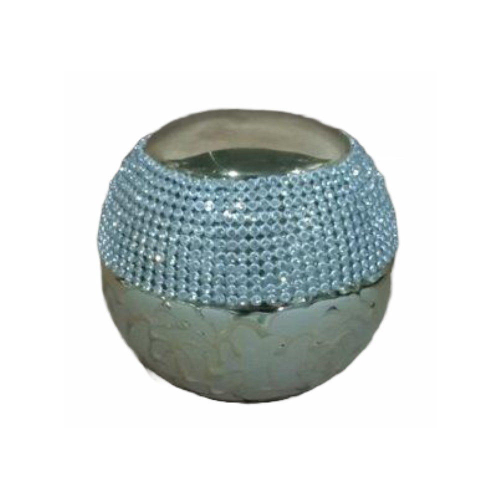 Διακοσμητική Μπάλα με Στρας Κεραμική Εκρού/Ασημί 12x12x12