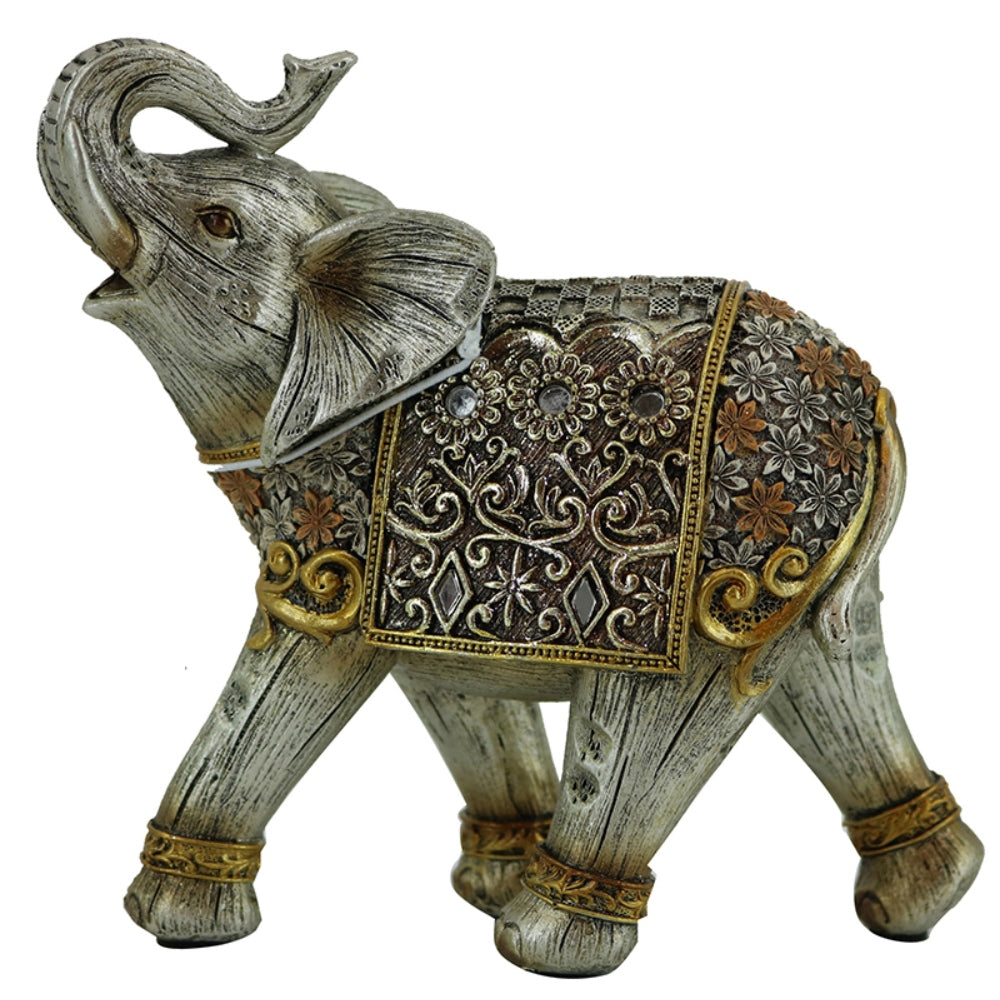 Διακοσμητικός Ελέφαντας Πολυρεσίνης Ασημί/Χρυσός 16x7x15