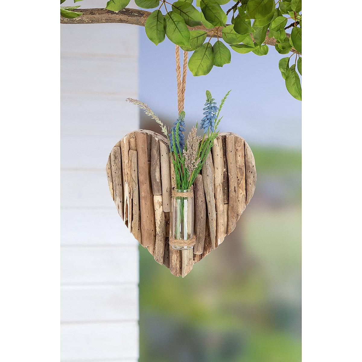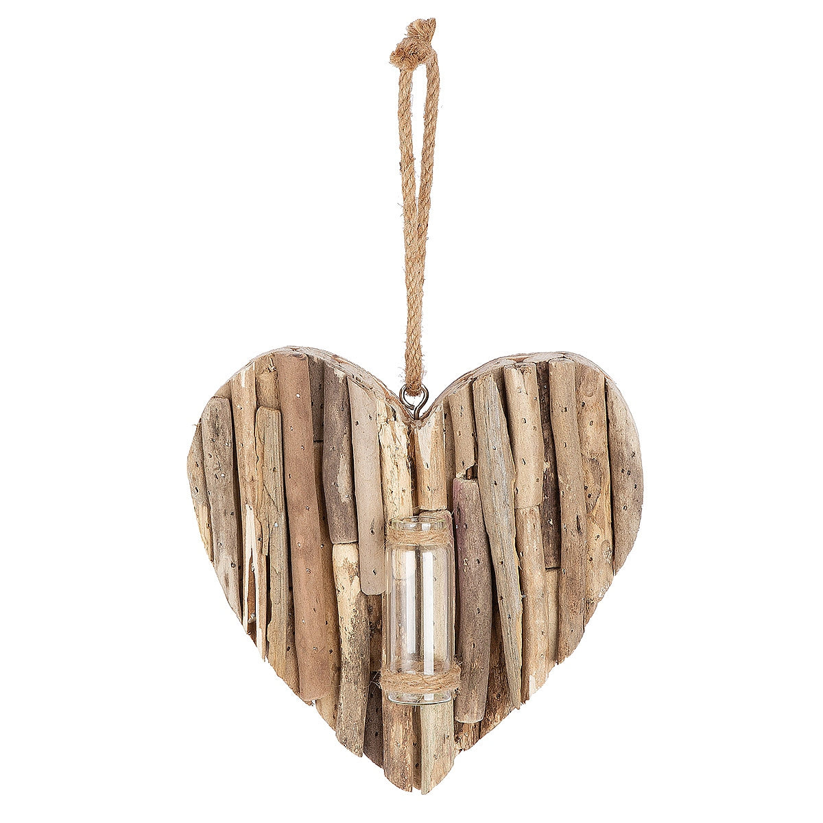 Διακοσμητικό Κρεμαστό Καρδιά με Δοκιμαστικό Σωλήνα Φυσικό Ξύλο 3.5x21x22