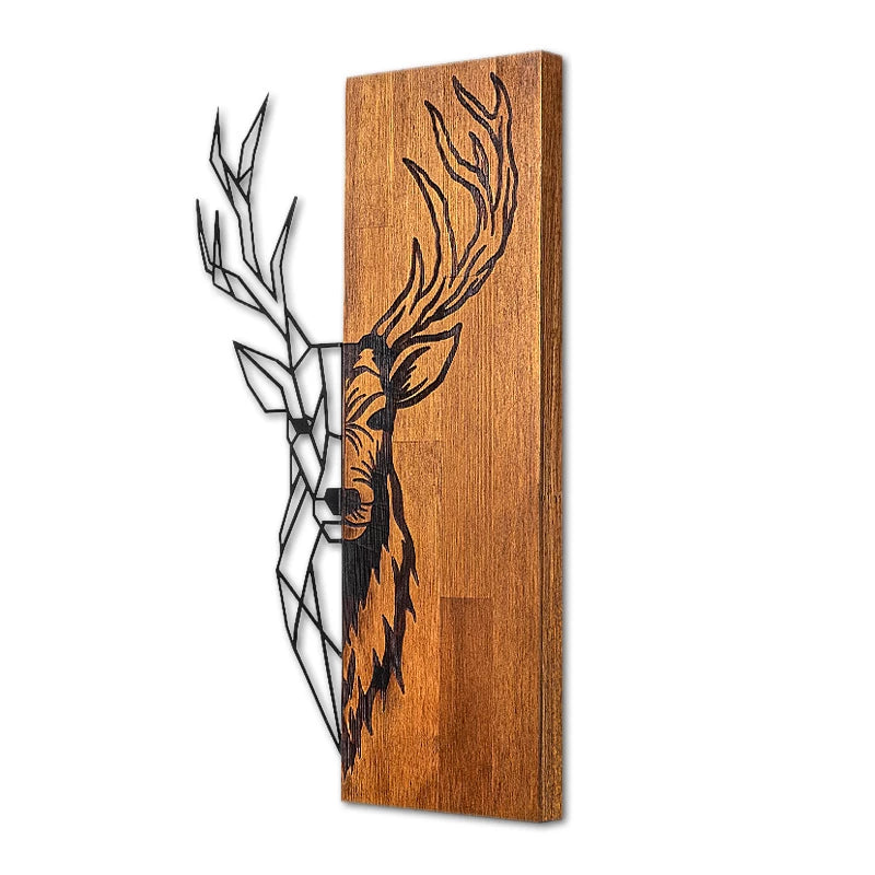 Διακοσμητικό Τοίχου Deer Ξύλινο - Μεταλλικό Χρώμα Καρυδί - Μαύρο 36x3X58