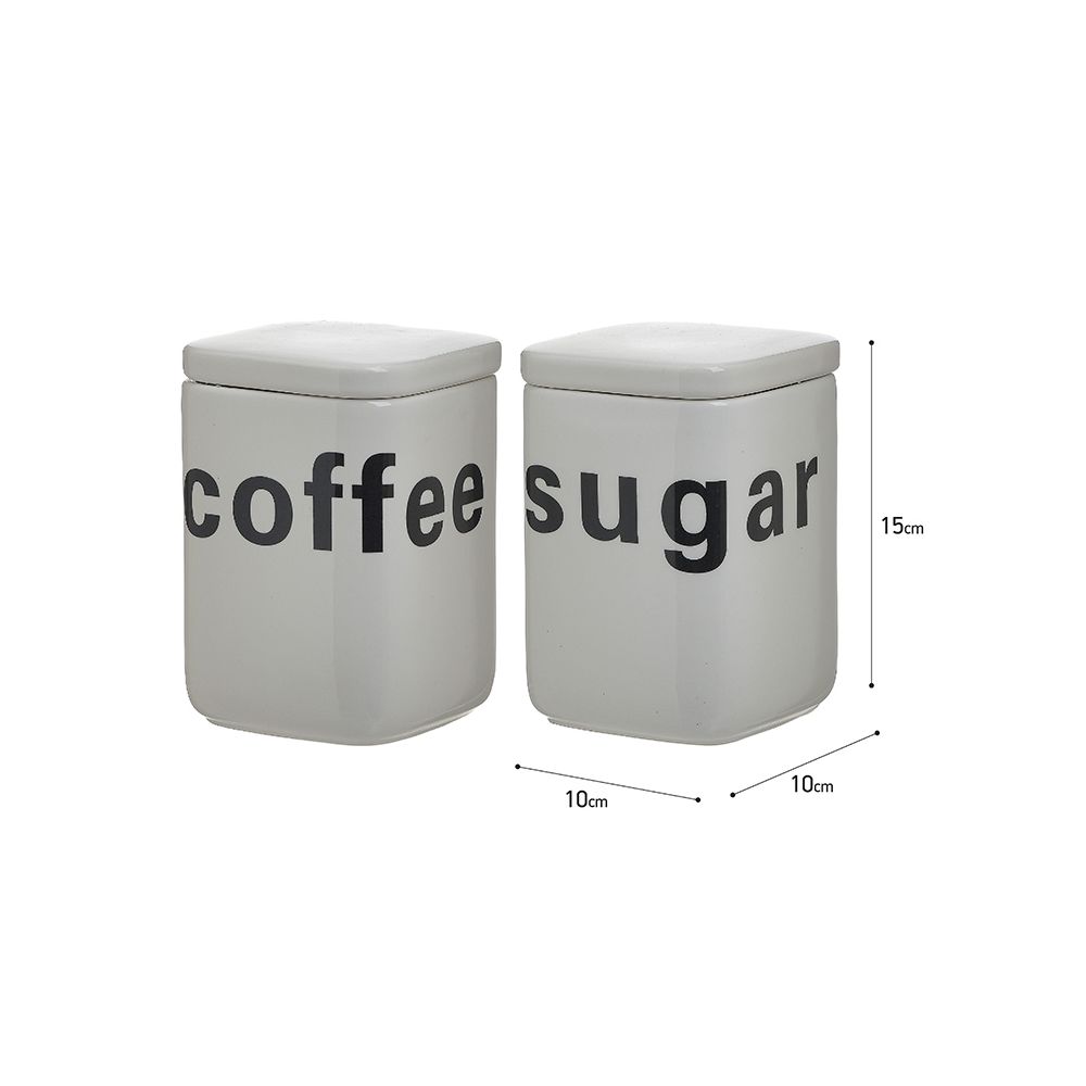Δοχεία Καφέ/Ζάχαρης Πορσελάνινα Λευκά/Μαύρα 10x10x15 (2 Τεμ.)
