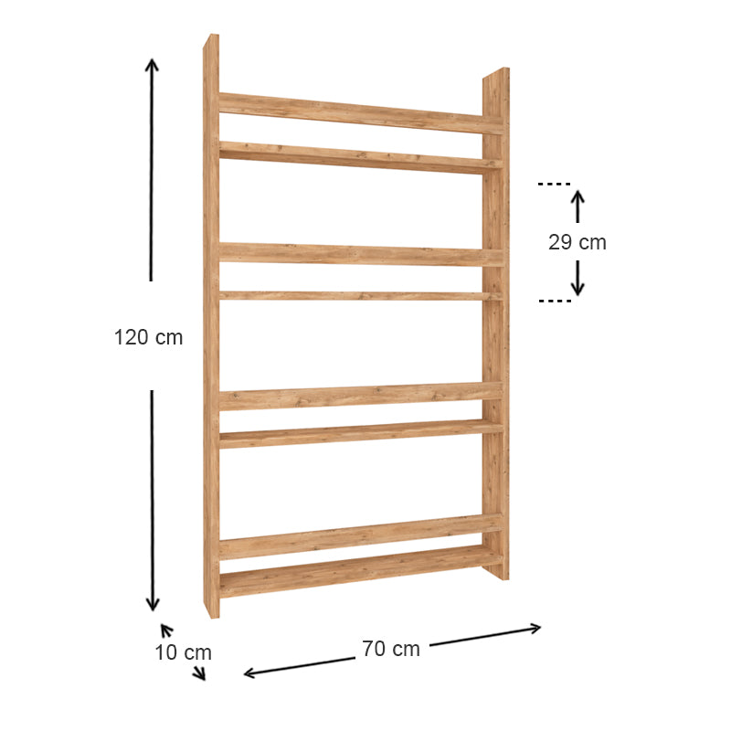 Επιτοίχια Βιβλιοθήκη - Ραφιέρα Montessori από Μελαμίνη Χρώμα Pine Oak 70x10x120