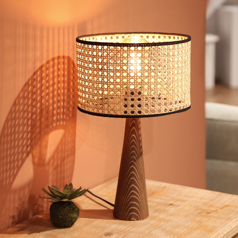 Επιτραπέζιο Φωτιστικό Retroa Ξύλο και PE Rattan σε Φυσικό Χρώμα Φ24x38