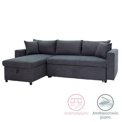 Καναπές Κρεβάτι Γωνιακός Υφασμάτινος Ανθρακί 225x148x81