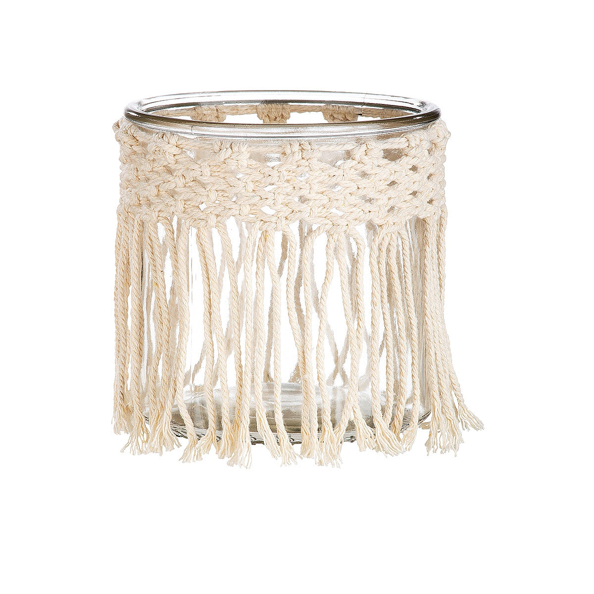 Κηροπήγιο με Μακραμέ Διακόσμηση Διάφανο/Μπεζ Γυαλί 12x12x12
