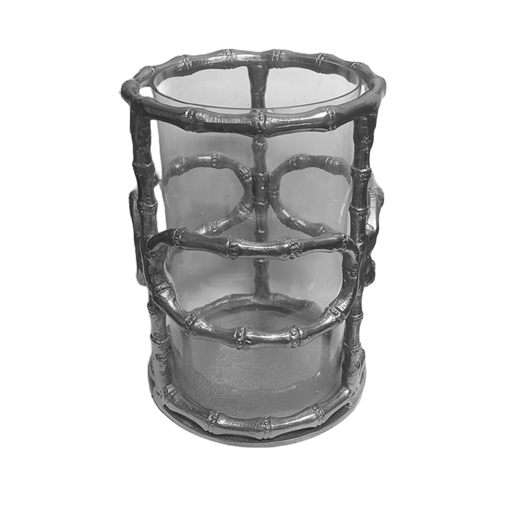 Κηροπήγιο Μεταλλικό/Γυάλινο Ασημί/Διάφανο 19x19x28