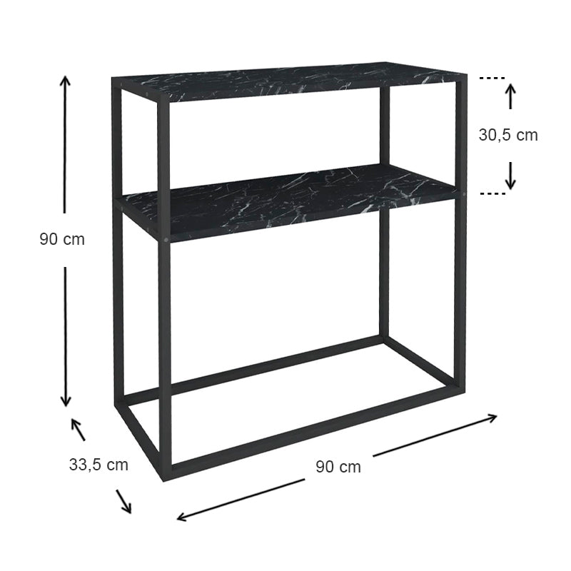 Κονσόλα Castel Μεταλλική - Μελαμίνης Χρώμα Μαύρο Εφέ Μαρμάρου 90x33,5x90