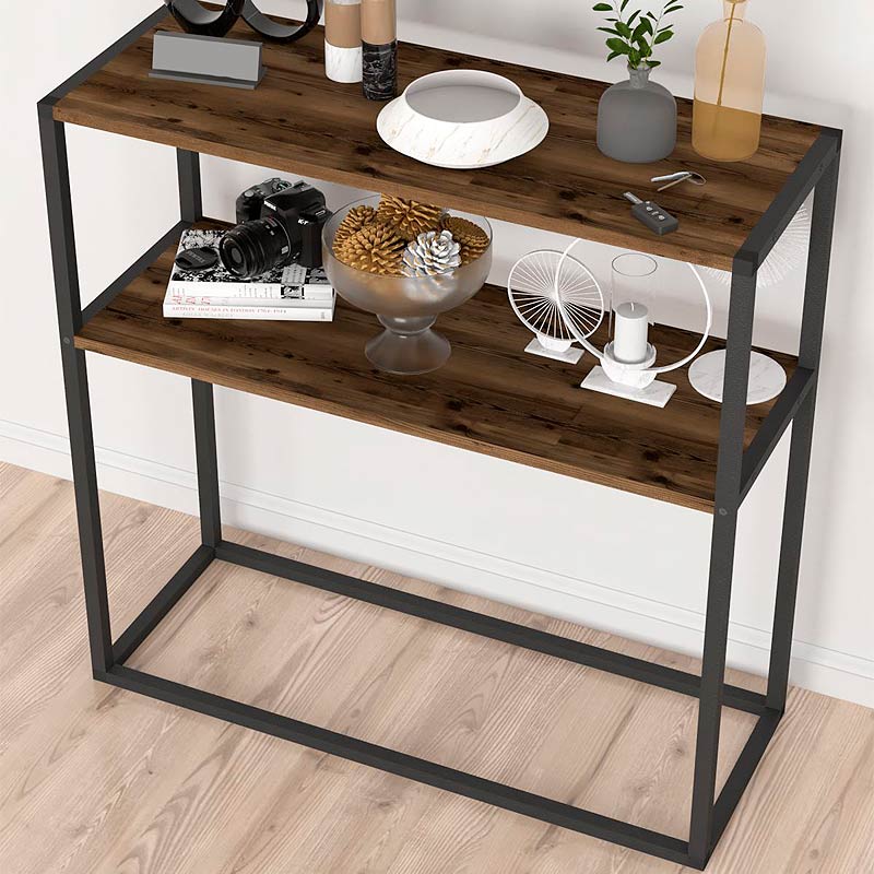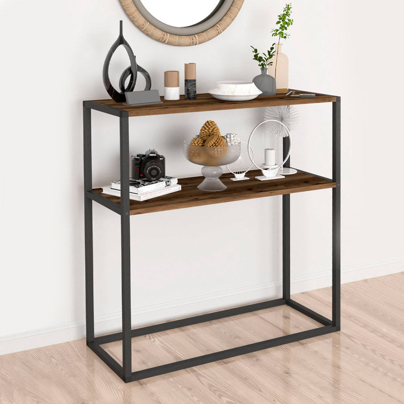 Κονσόλα Castel Μεταλλική - Μελαμίνης Χρώμα Μαύρο - Καπνιστή Καρυδιά 90x33,5x90