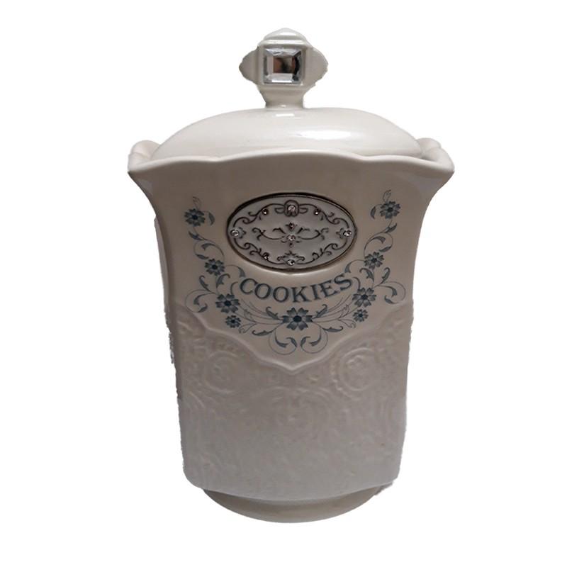 Μπισκοτιέρα Κεραμική Λευκή/Γαλάζια 10x10x18