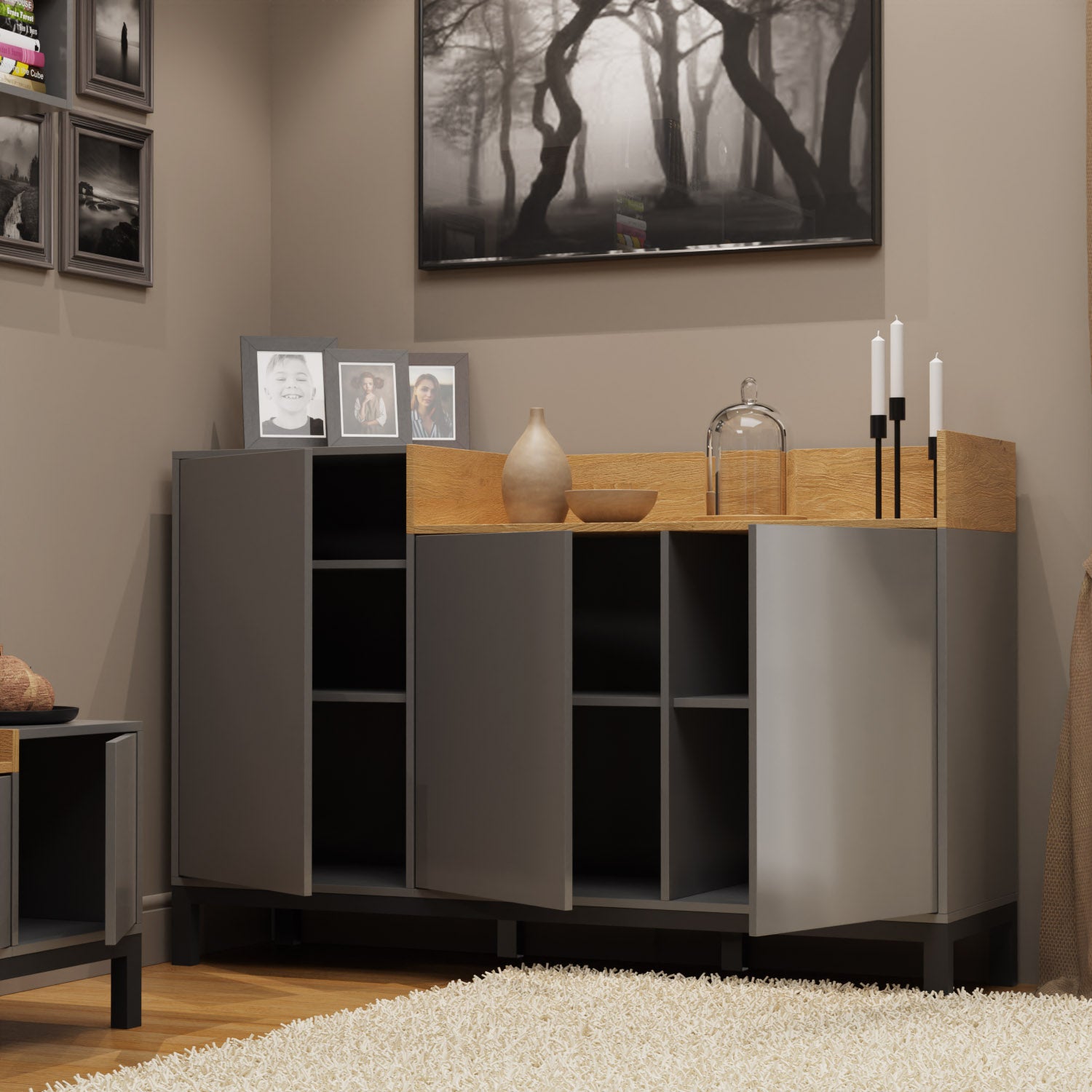 Μπουφές Beril, Ευρωπαϊκής Κατασκευής, εξαιρετικής ποιότητας και υψηλής αντοχής, σε ιδιαίτερο συνδυασμό χρωμάτων ανθρακί με χρυσό δρυς.