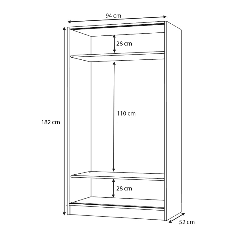 • Διαστάσεις: Μήκος 94 x Βάθος 52 x Ύψος 182 εκ.