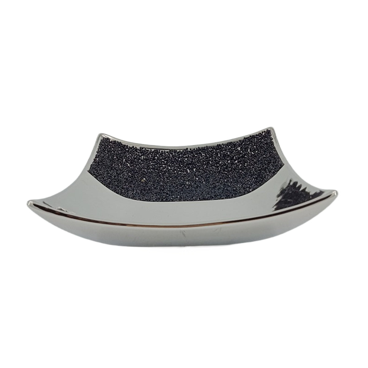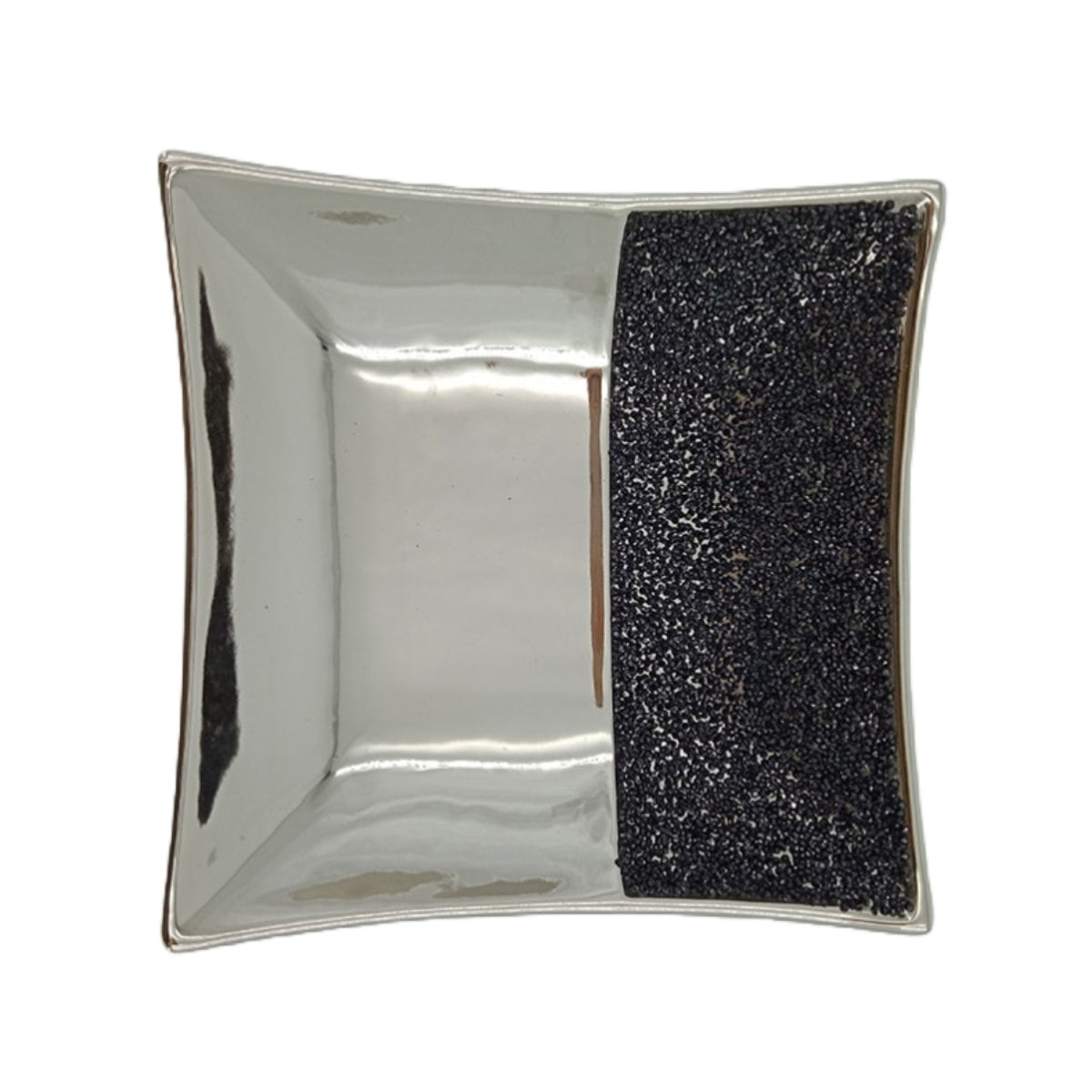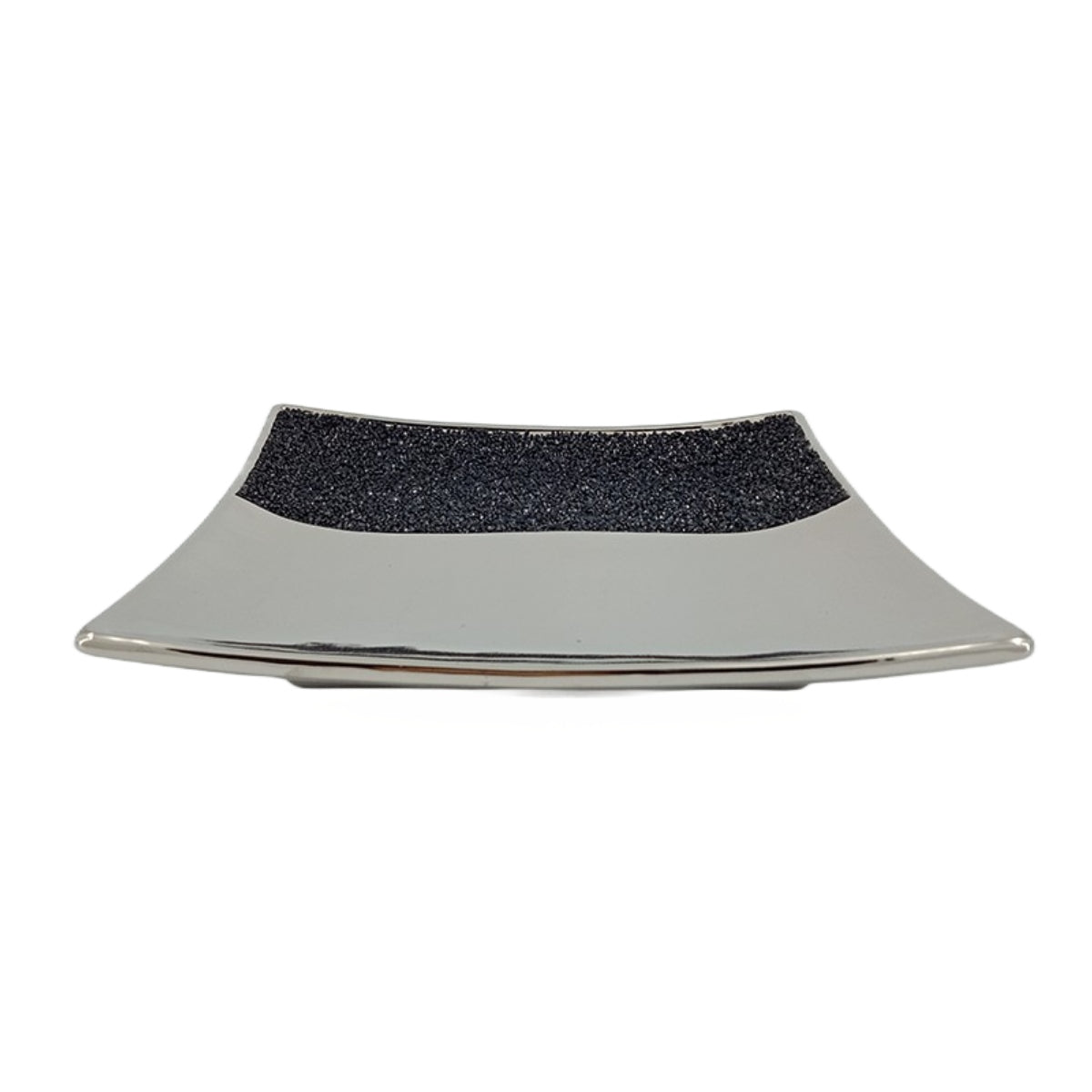 Πιατέλα με Στρας Κεραμική Ασημί/Μαύρη 28x28x5