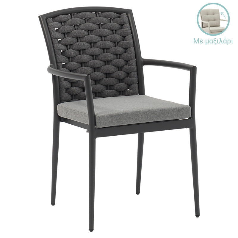 • Η πλάτη είναι κατασκευασμένη από textilene σχοινί, ανθεκτικό στις ακτινοβολίες UV