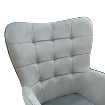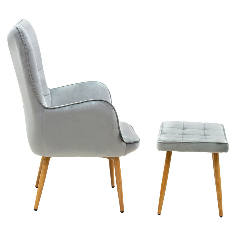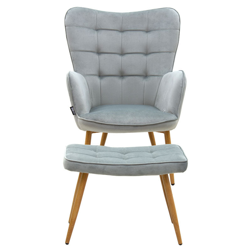 Πολυθρόνα με Υποπόδιο Βελούδινη/Ξύλινη Γκρι/Φυσική 68x72x98