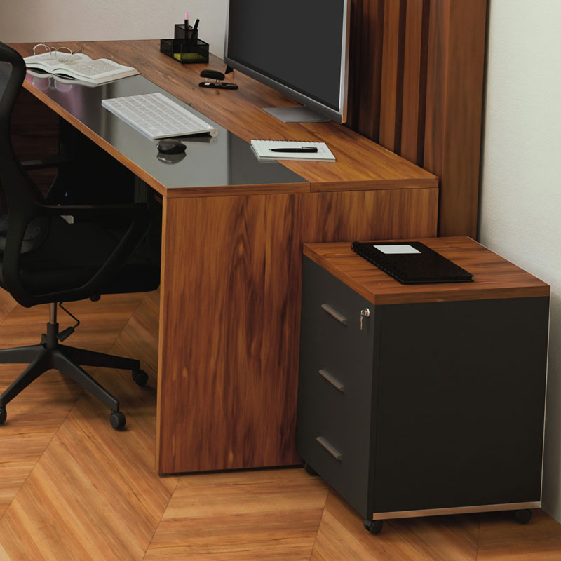 Τροχήλατη συρταριέρα Oscar στον εντυπωσιακό χρωματισμό του καρυδί. Κατασκευασμένη από υλικά υψηλών προδιαγραφών και σύμφωνα με τις εργονομικές απαιτήσεις του σήμερα.