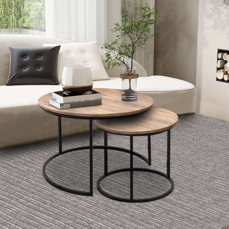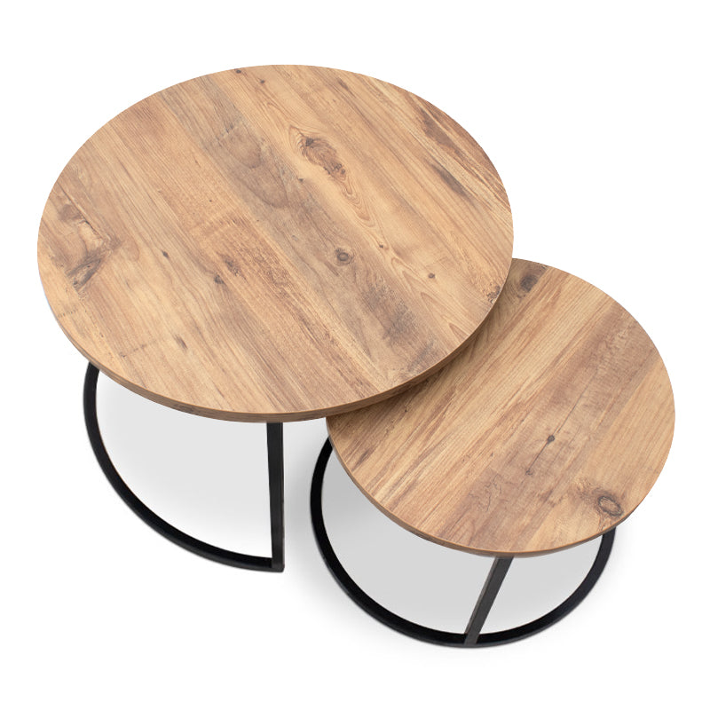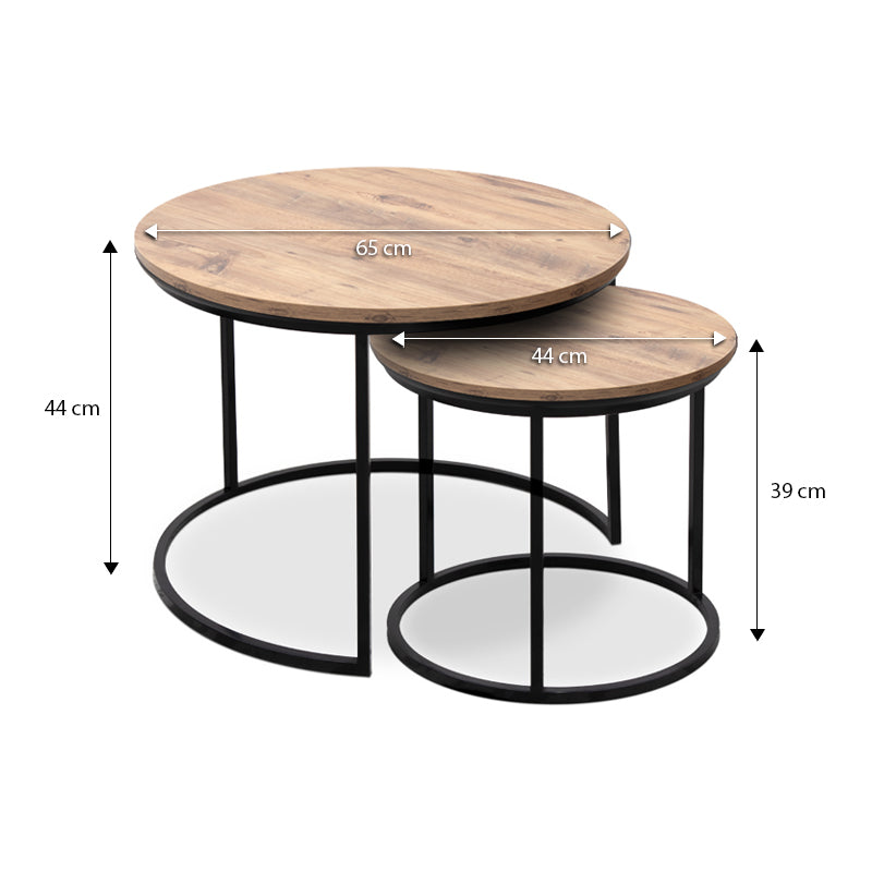 • Το σετ περιλαμβάνει δύο στρογγυλά τραπεζάκια, ένα μικρότερο κι ένα μεγαλύτερο.