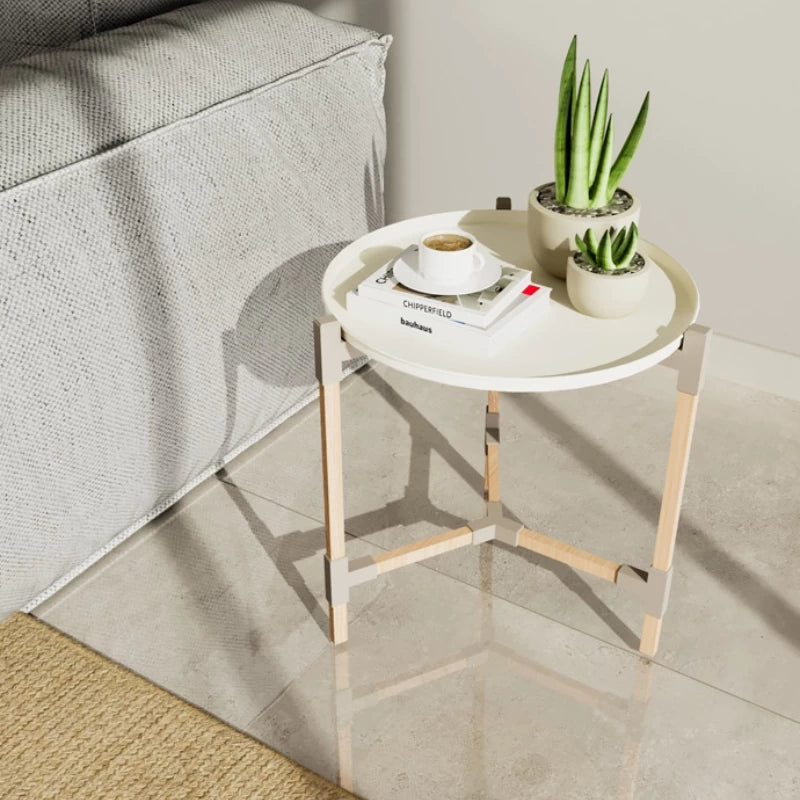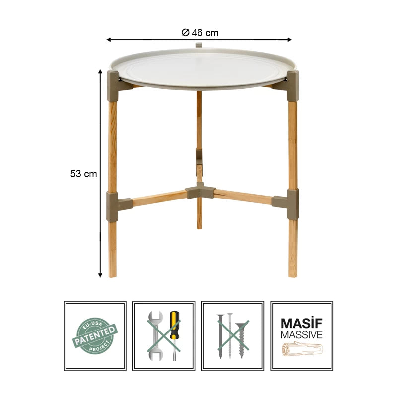 Τραπεζάκι Βοηθητικό Ξύλινο - Πλαστικό Χρώμα Μπεζ Φ46x53