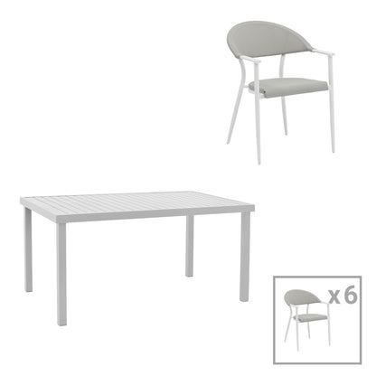 Τραπεζαρία Kliton-Norture Σετ 7 Τεμ Αλουμίνιο σε Λευκή Απόχρωση 150x80x74