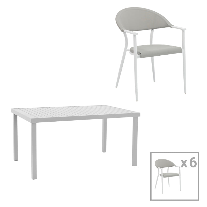 Τραπεζαρία Kliton-Pino Σετ 7 Τεμ Αλουμίνιο σε Λευκή Απόχρωση 150x80x74