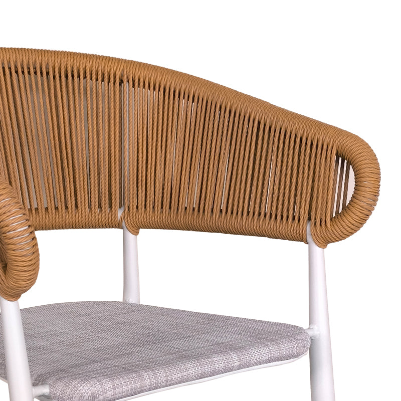 • Έδρα κατασκευασμένη από textilene. Το textilene είναι ένα εξαιρετικά ανθεκτικό υλικό που χρησιμοποιείται ευρέως σε επίπλωση εξωτερικών χώρων και εξαρτήματα. Αποτελείται από πολυεστερικές ινώδεις που επικαλύπτονται με PVC (πολυβινυλοχλωρίδιο), δημιουργώντας ένα υλικό που συνδυάζει ανθεκτικότητα, αντοχή στις καιρικές συνθήκες και εύκαμπτη υφή. Το υλικό αυτό επιτρέπει τη διέλευση του αέρα, βοηθώντας στη διατήρηση μιας δροσερής αίσθησης κατά τη χρήση.