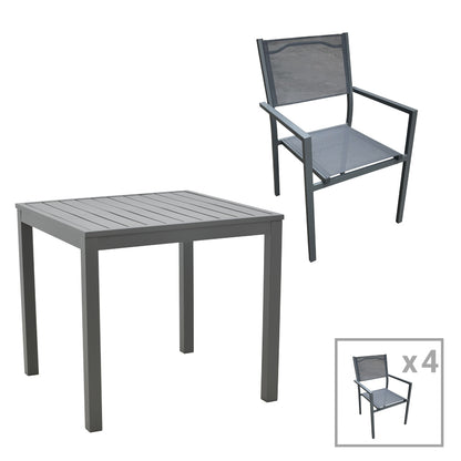 Τραπεζαρία Moly - Kliton Ι Σετ 5 Τεμ Ανθρακί Αλουμίνιο και Textilene σε Ανθρακί Απόχρωση 80x80x74