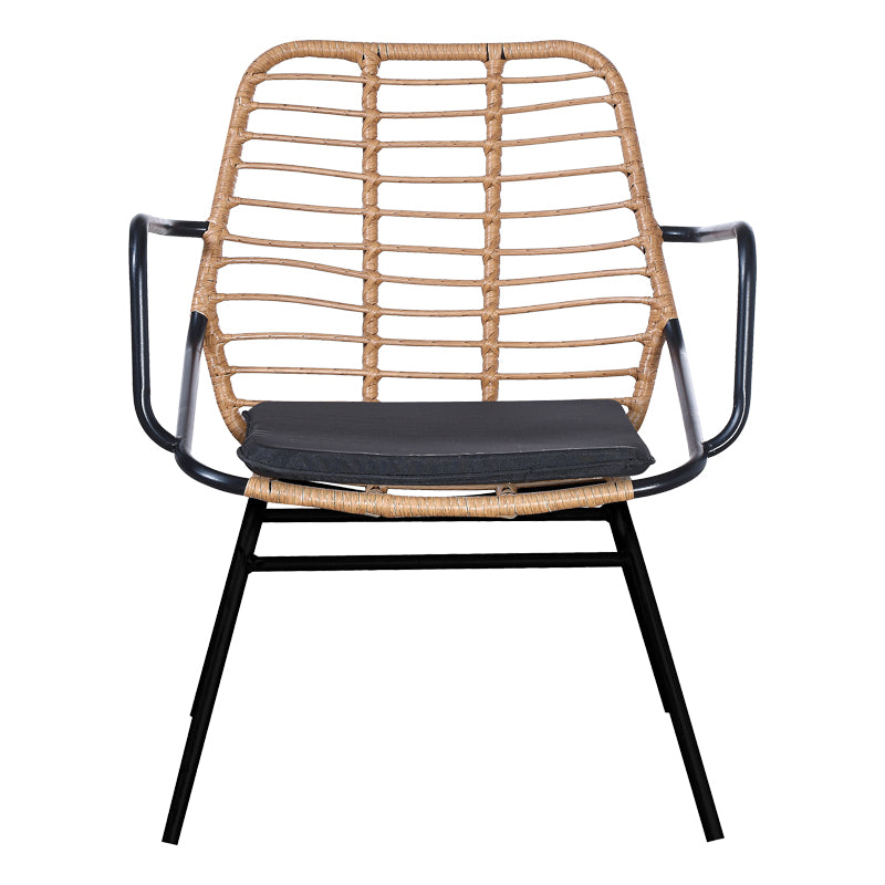 • Κυρίως επιφάνεια καρέκλας από PE rattan σε φυσικόχρώμα. Το PE rattan είναι ένα είδος οικολογικού συνθετικού rattan, ανακυκλώσιμο και με μεγαλύτερη ανθεκτικότητα σε σχέση με τα άλλα είδη.