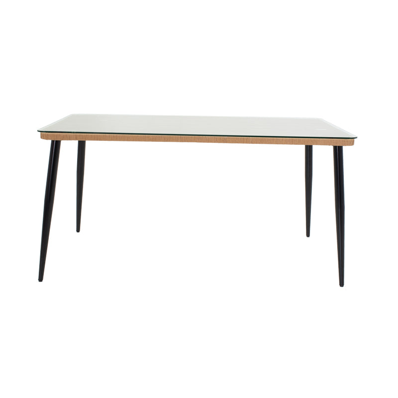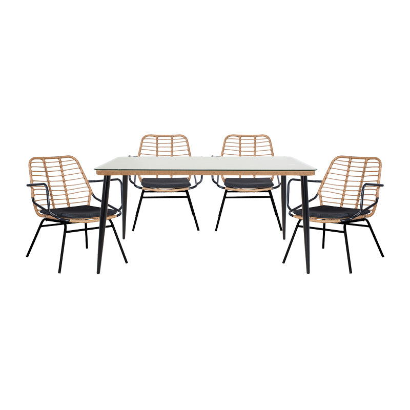 Τραπεζαρία Naoki A Σετ 5 Τμχ Rattan Φυσικό-Μαύρο Μέταλλο-Γυαλί 160x90x78