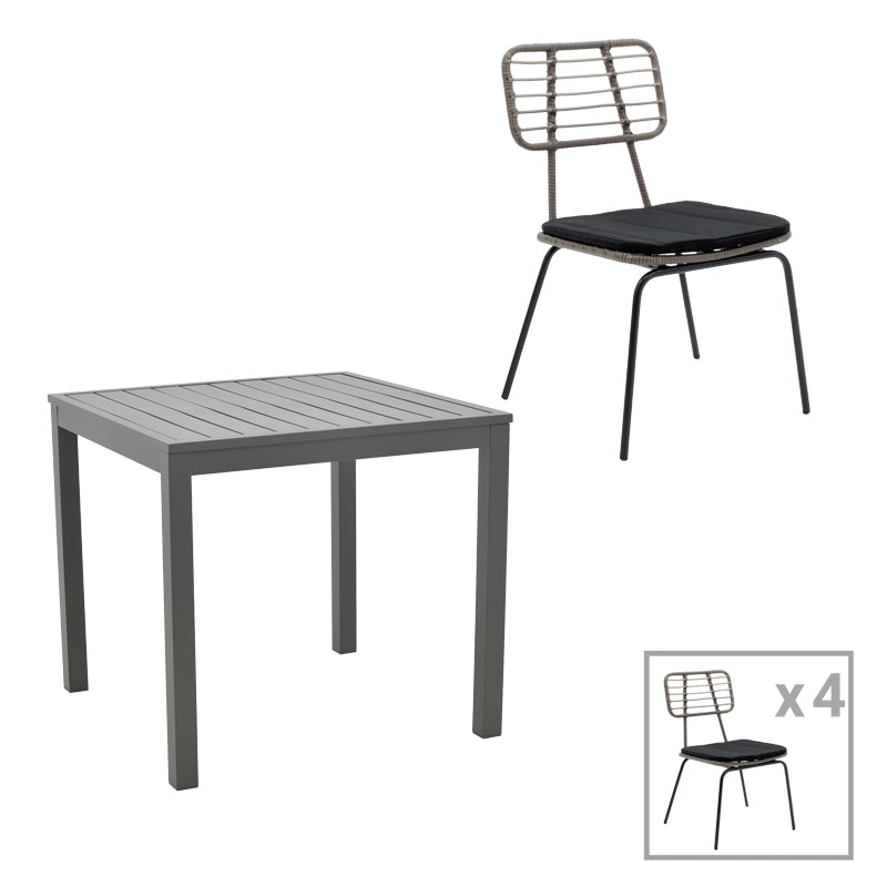 Τραπεζαρία Naoki - Kliton Σετ 5 Τεμ Ανθρακί Αλουμίνιο και Μέταλλο σε Μαύρη Απόχρωση 80x80x74