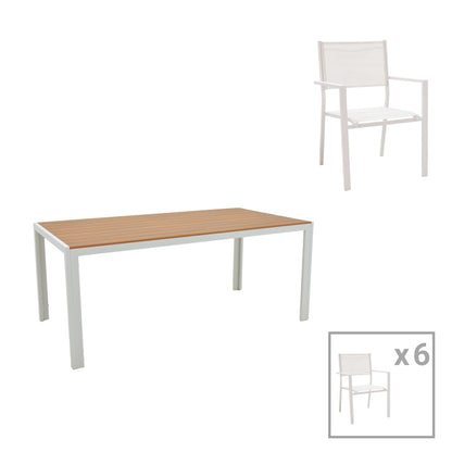 Τραπεζαρία Nares - Moly A Σετ 7 Τεμ Λευκό Αλουμίνιο και Plywood σε Φυσικό Χρώμα 180x90x72.5