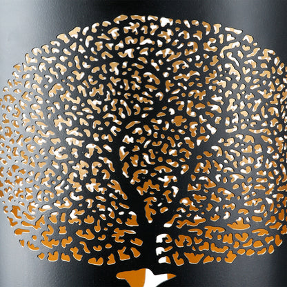 Φανάρι Καταιγίδας Cylindrical "Solitary Tree" Δέντρο Motif Μέταλλο Μαύρο Χρυσό 17x12x20