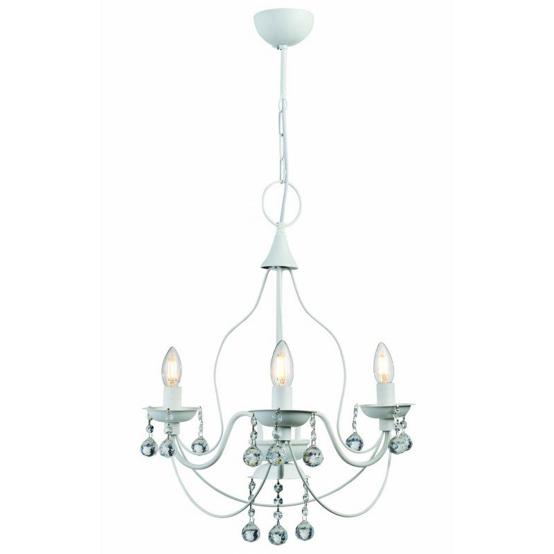 Φωτιστικό πολύφωτο 3φ Ε14 vintage μεταλλικό λευκό με διάφανα κρύσταλλα