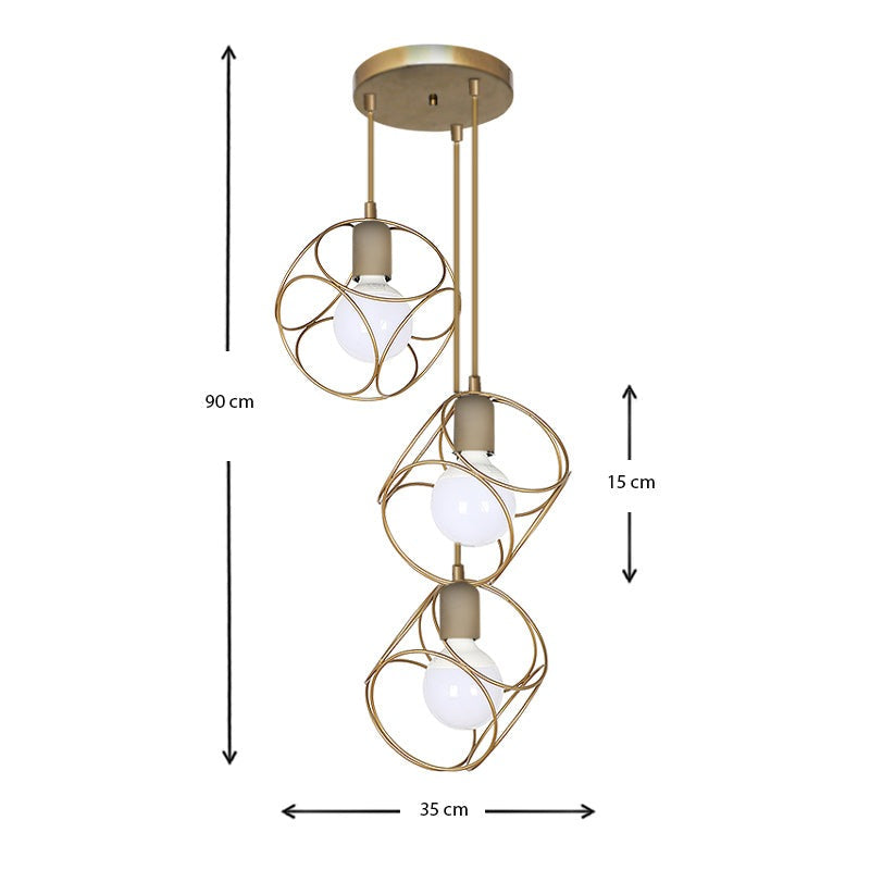 Φωτιστικό Οροφής Lusita E27 Μεταλλικό Τρίφωτο Χρώμα Χρυσό 35x35x90