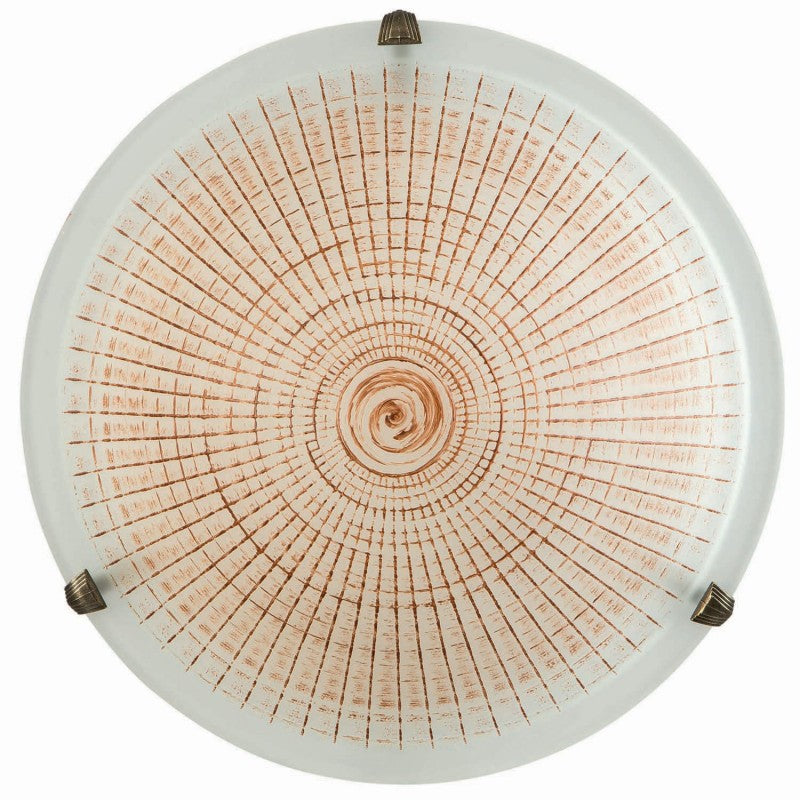 Φωτιστικό πλαφονιέρα Ε27 Φ30 σε κλασική γραμμή με καφέ γυαλί και μπρονζέ γατζάκια