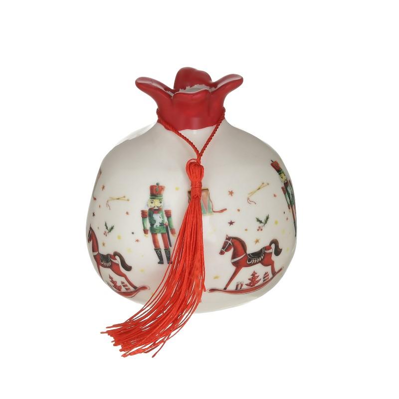 Χριστουγεννιάτικο Ρόδι Στολισμένο Κεραμικό Μπεζ/Κόκκινο 9x9x10