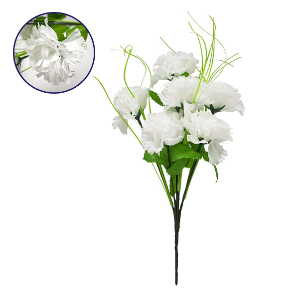 09074 Τεχνητό Φυτό Διακοσμητικό Μπουκέτο Λευκό M20cm x Υ35cm Π20cm με 7 X Γαρύφαλλα