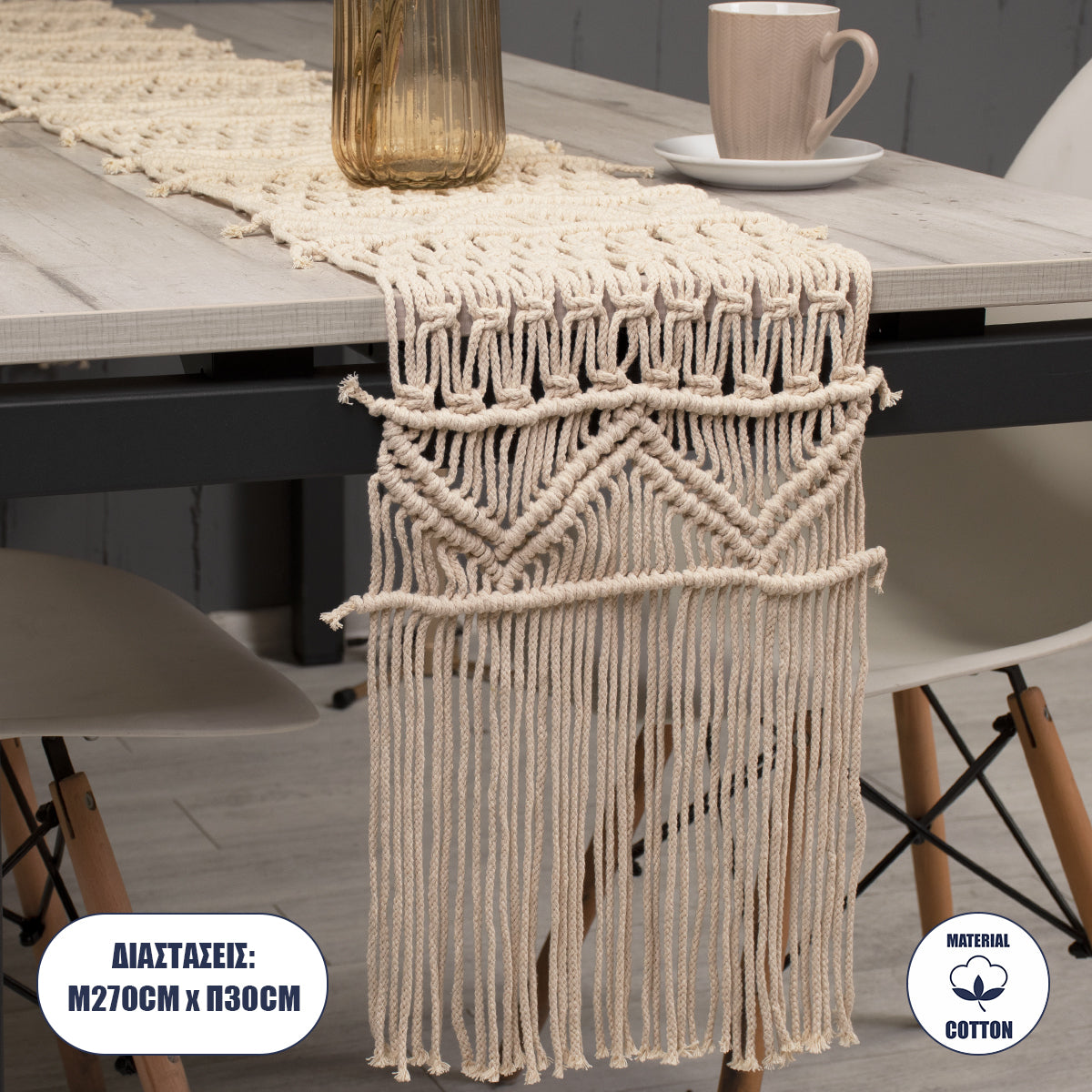 35401 Μακραμέ Ράνερ Χειροποίητο Μπεζ Μ270 x Π30cm